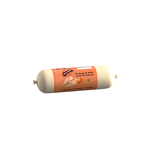 Ingredientes: pechuga de pollo (96%), aceite de salmón.