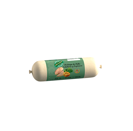 Ingredientes: pechuga de pollo (96%), calabaza, espinaca.